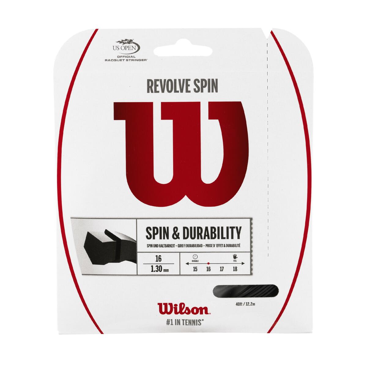 Le Wilson Revolve Spin 16 Set est un cordage monofilament polyester texturé spécialement conçu pour les joueurs qui veulent générer davantage d’effet (spin) tout en conservant un contrôle fiable et une excellente stabilité de trajectoire. Avec son calibre 1,30 mm (16 gauge), il offre un très bon compromis entre accroche de balle, sensations et durabilité, ce qui en fait un choix pertinent pour ceux qui aiment dicter le rythme du jeu avec des rotations marquées.